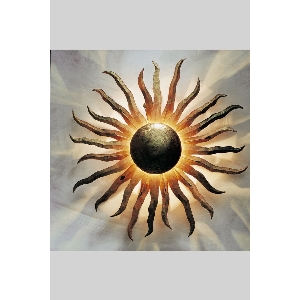 La mirada puede perderse en los brazos de los rayos, es atraída por los movimientos juguetones, esforzándose hacia el exterior. Encuentra tu propio sol: elige entre tres tamaños y dos colores.