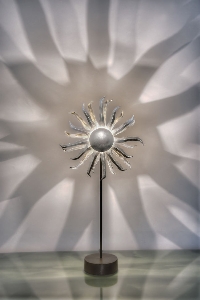 La mirada puede perderse en los brazos de los rayos, es atraída por los movimientos juguetones, esforzándose hacia el exterior. Encuentra tu propio sol: elige entre tres tamaños y dos colores.