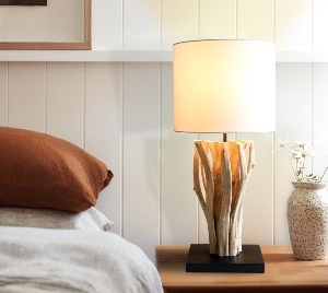 (incluido) - Farbe: Holz (Sockel) und Baumwolle (Lampenschirm) in Bleached und Weiß
