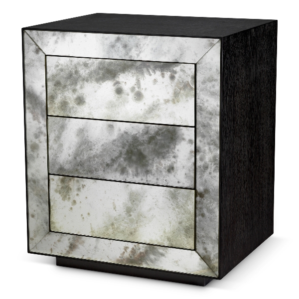 - Material: Der Nachttisch Bogart ist aus anthrazitfarbenem Eichenfurnier und antikem Spiegelglas gefertigt, was ihm seine einzigartige Ausstrahlung verleiht.