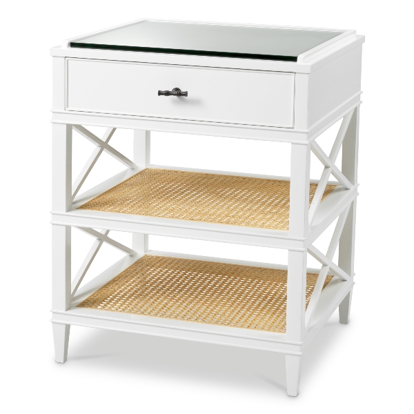 - Farbe: Weißes Finish | natürliches Rohr | klares Glas