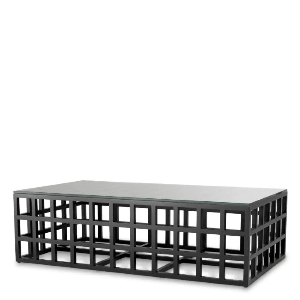 Mit seiner klassischen schwarzen Oberfläche, die Eleganz ausstrahlt, fügt sich dieses Stück nahtlos in jede Inneneinrichtung ein. Die klare Glasplatte ergänzt die zeitlose Ausstrahlung des Holzes, während der ausgeprägte geometrische Rahmen des Sockels die charakteristische Handwerkskunst von Eichholtz zur Schau stellt. Entdecken Sie diese exklusive Ergänzung, um Ihren Lebensstil mit einem Hauch von Luxus zu bereichern, und entdecken Sie den Rest der Eichholtz-Kollektion für zusammenhängende Wohnzimmerlösungen.
