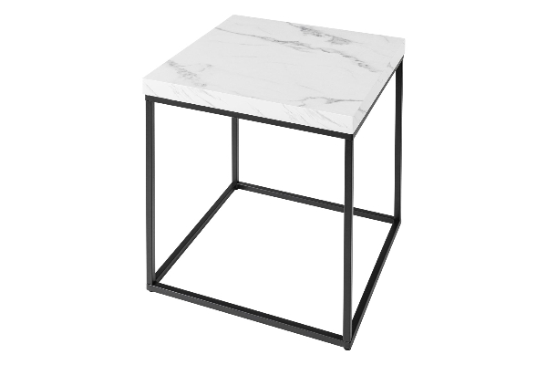 - Material: Der Beistelltisch besteht aus MDF mit einer beschichteten Oberfläche, die den Marmoreffekt erzielt, und einem pulverbeschichteten Metallrahmen für optimale Stabilität.