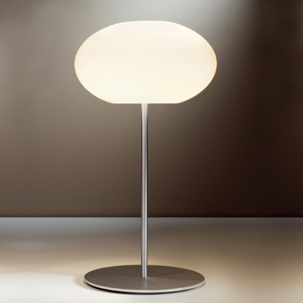 La luminaria de la lámpara de sobremesa AIH está construida con aluminio y acero inoxidable de alta calidad, la superficie está refinada mediante cepillado manual. El vidrio soplado a mano produce una luz uniforme y sin deslumbramientos, con un alto factor de \"bienestar\". La sólida base de la lámpara garantiza un soporte seguro y estable en aparadores, mesillas de noche y escritorios. Disponible en 2 tamaños y 4 tipos de cristal. Disponible opcionalmente con o sin regulador manual (adecuado para lámparas LED regulables) en el cable de la lámpara.